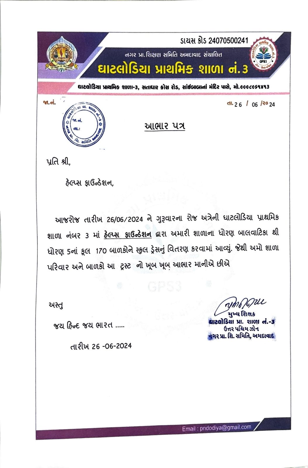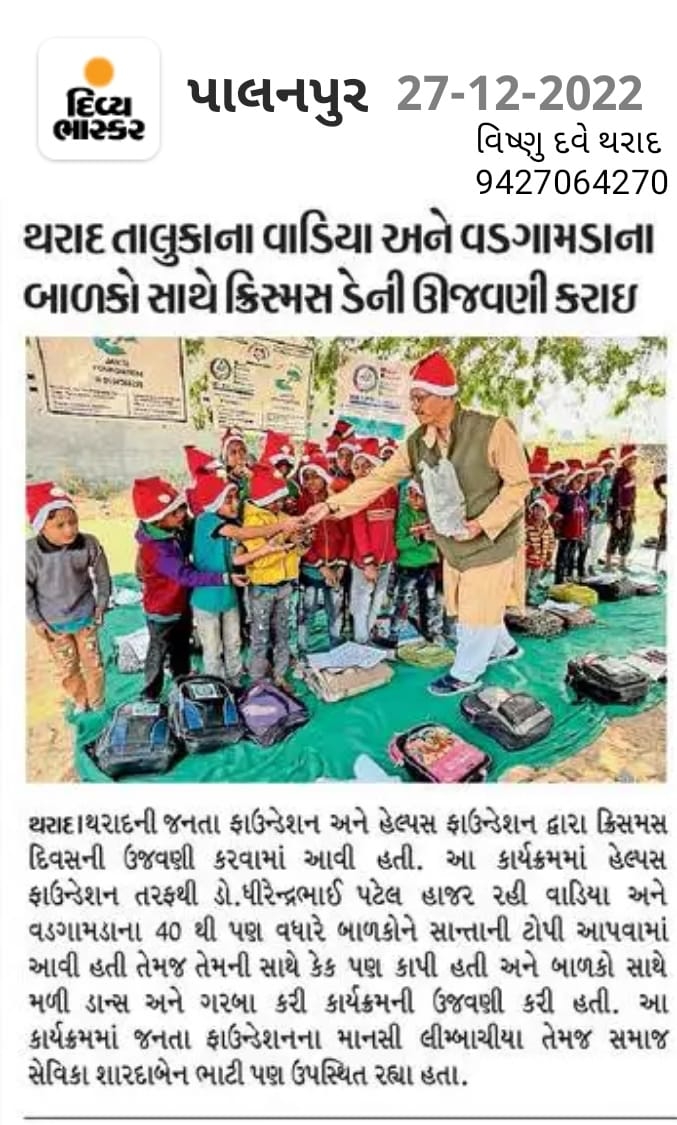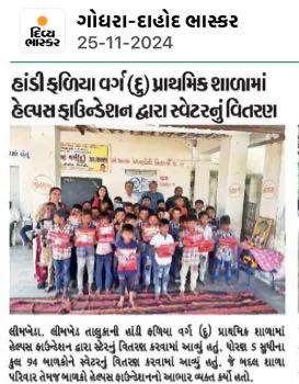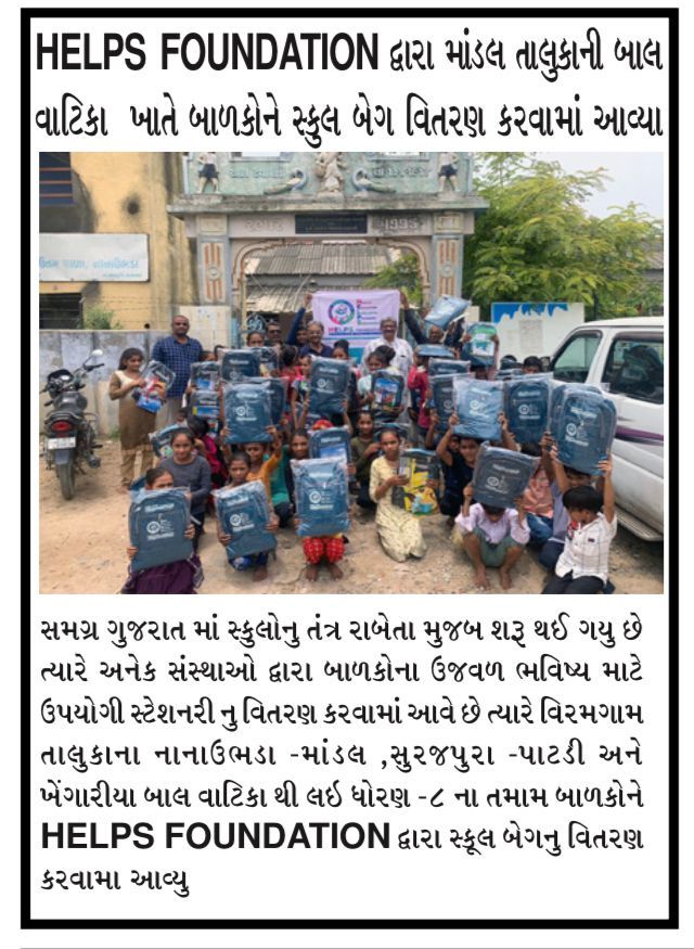 Media Coverageહેલ્પ્સ ફાઉન્ડેશન દ્વારા ઝેરજીત ગઢ પ્રાથમિક શાળામાં સ્ટેશનરી કીટ અને ચોપડાનું વિતરણ