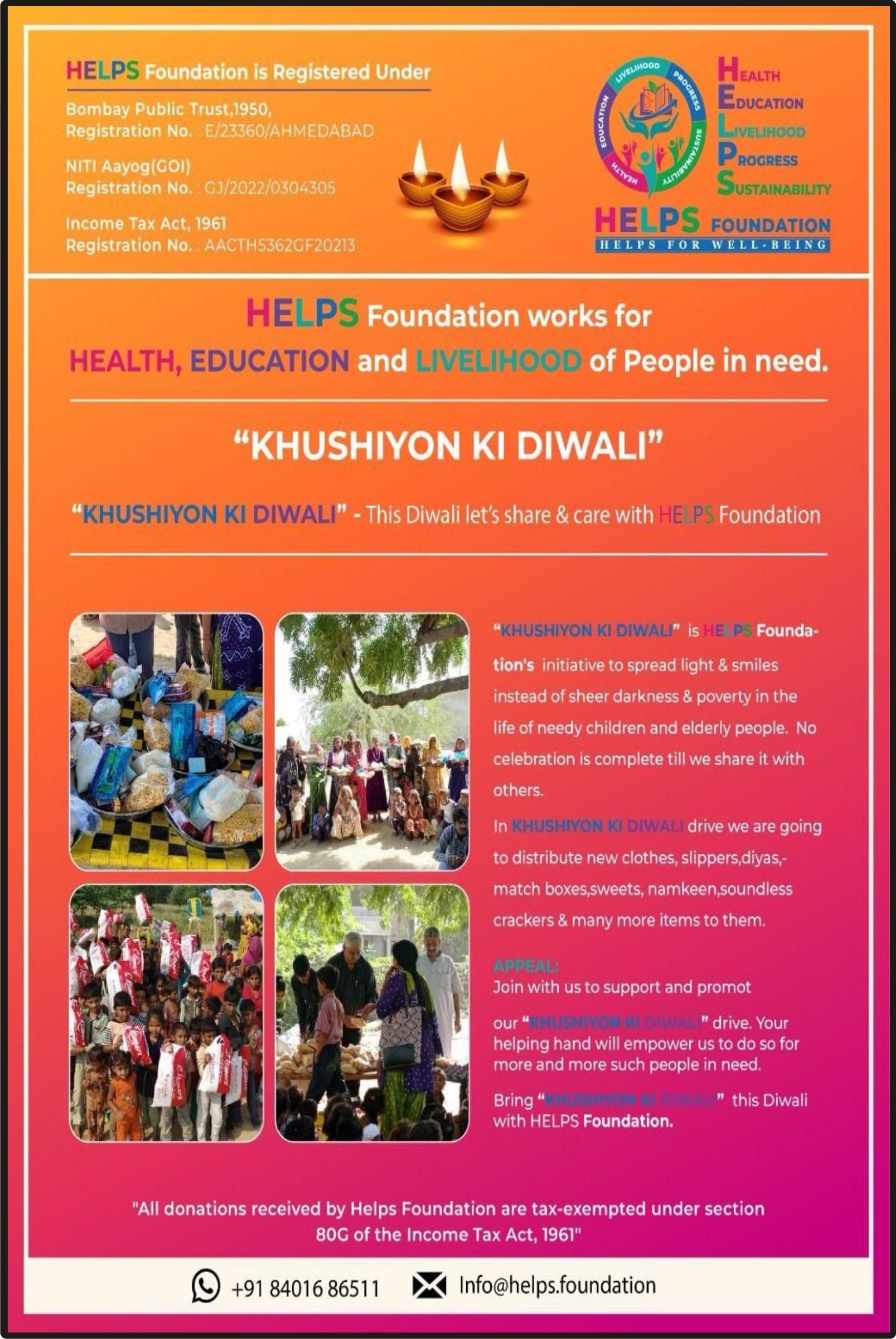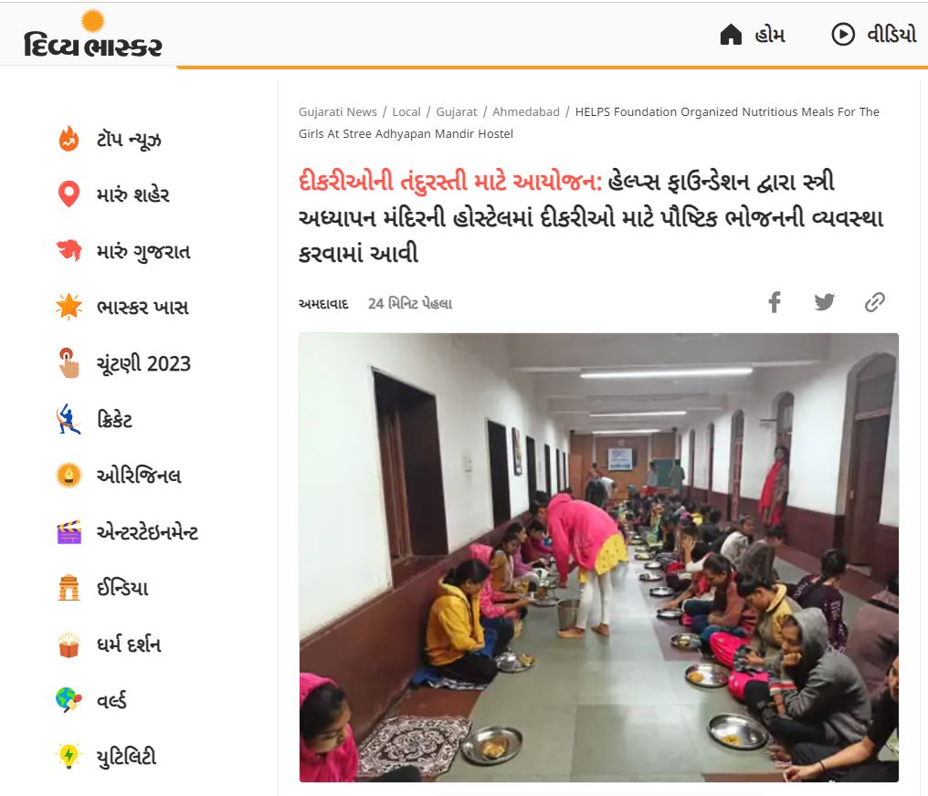 હેલ્પ્સ ફોઉન્ડેશન દ્વારા આશો નવરાત્રી અષ્ટમી નિમિત્તે કુમારિકા દાન તથા ભોજન