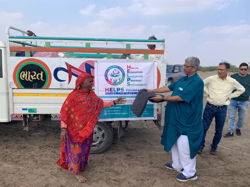 કચ્છના નાના રણમાં આવેલ ઝીંઝુવાડાના વિસ્તારમાં શિયાળાની કડક ઠંડીથી રાહત આપવા માટે મીઠાના આગરિયા અને તેમના પરિવારજનોને ગરમ ધાબળા તેમજ બાળકોને ગરમ ટોપી અને પોષક નાસ્તાનું વિતરણ વર્ષ 2026 ના પ્રથમ દિવસે